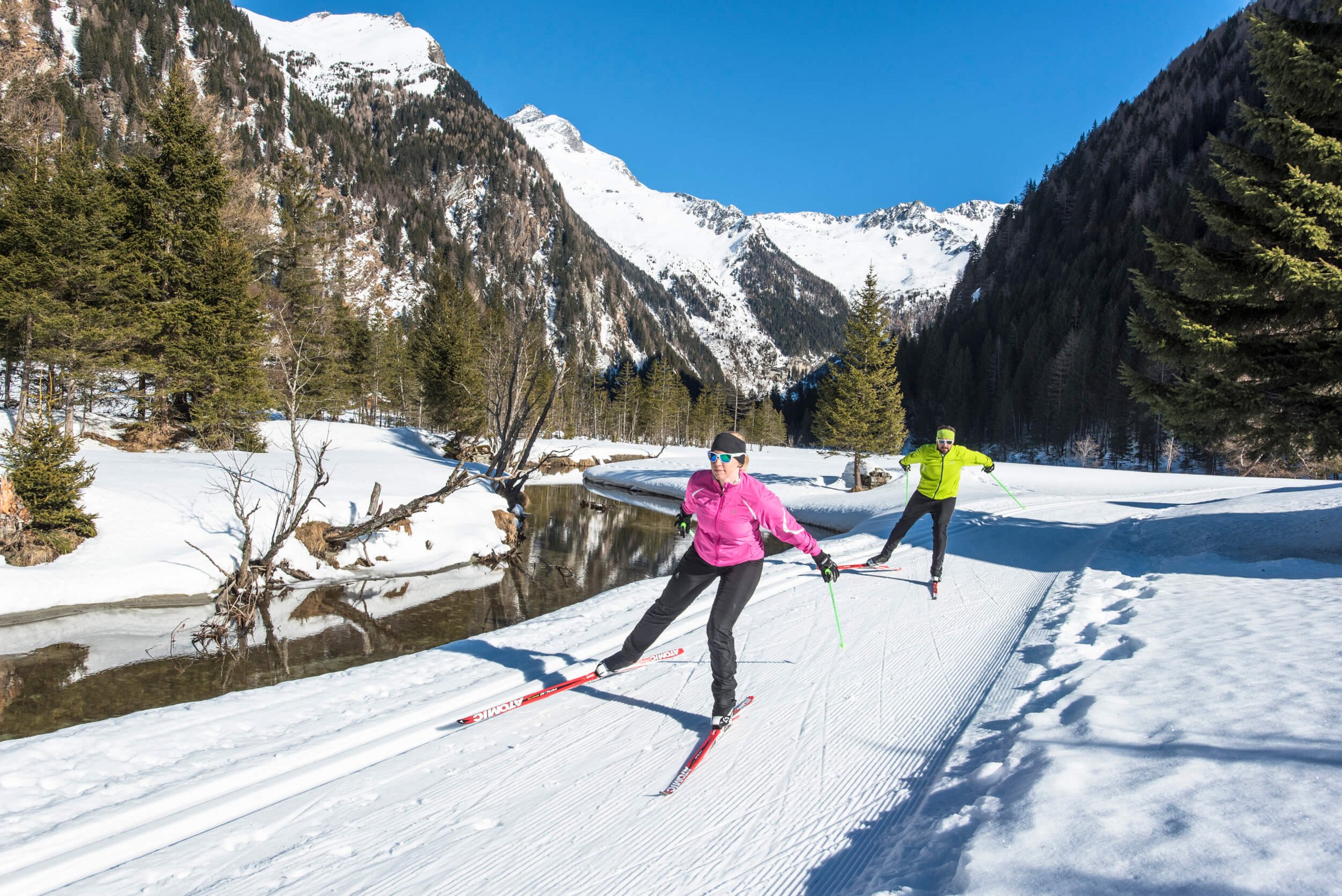 Bereit für 50 Kilometer mit Loipengütesiegel? In Mallnitz geht’s mal klassisch, mal im Skating Stil durch wildromantische Nationalparktäler – mit Blick auf die 3.000er der Hohen Tauern.
